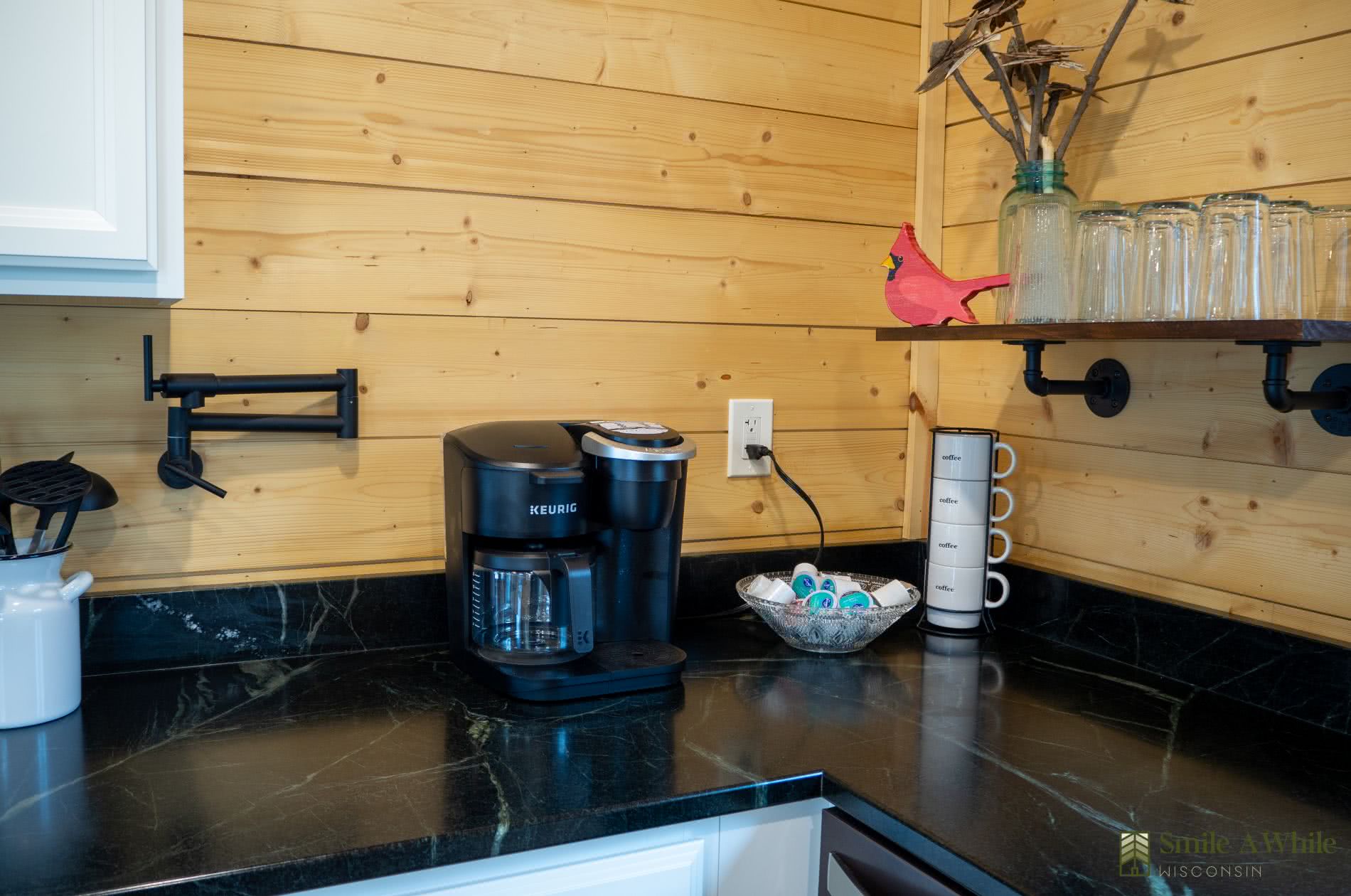 - Кофе- и чайный уголок: включает френч-пресс, кофеварку Keurig и чайник.